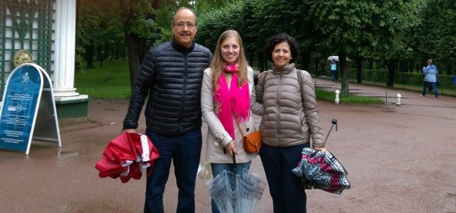 Regresamos con bien ya a Chihuahua MUY contentos toda la familia g a Dios. Queremos agradecerte especialmente por tu excelente guía en Sn Petersburgo. Definitivamente lograste hacer que nuestra estancia en esa hermosa ciudad fuera atractiva y muy interesante. Nos encantaron todos los lugares que visitamos. Gracias por tu trato tan amable y tu paciencia. Eres una persona con una gran calidad humana ademas de tener gran preparación y profesionalismo en lo que haces. Tu espa;ol es excelente, Felicidades!!!